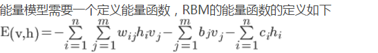 - 每个可视节点和隐藏节点之间的连接结构都有一个能量,通俗来说就是可视节点的每一组取值和隐藏节点的每一组取值都有一个能量,如果可视节点的一组取值(也就是一个训练样本的值)为(1,0,1,0,1,0),隐藏节点的一组取值(也就是这个训练样本编码后的值)为(1,0,1),然后分别代入上面的公式,就能得到这个连接结构之间的能量。