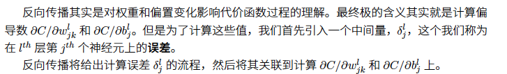 - 反向传播是对权重和偏置变化影响代价函数的过程的理解